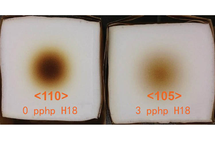 与市场上的其他硬化添加剂不同,nt add h18可显着提高硬度,同时不影响泡沫的孔结构。当nt add h18添加到配方中时,没有必要改变tdi或锡的量来维持开孔结构。使用量为1至5pphp,取决于所需的硬度增加。取决于泡沫密度,配方和生产参数,可以在不显着改变孔结构的情况下提高35%的硬度。